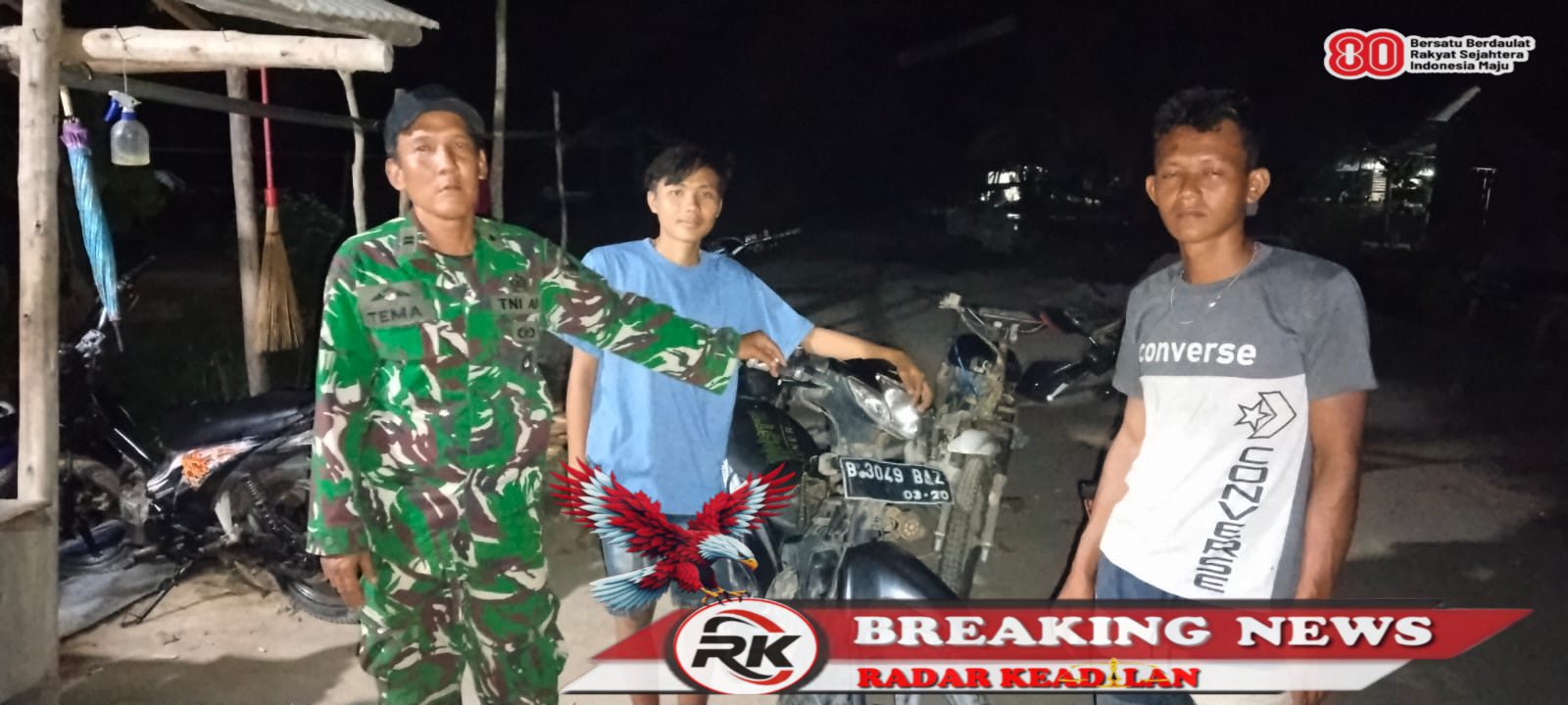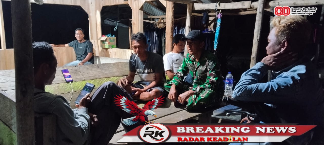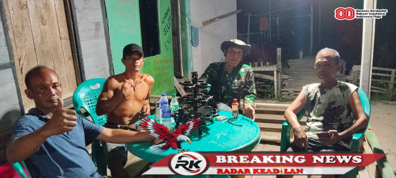 Babinsa Koramil 402-13/Sungai Menang Kodim 0402/OKI, Peltu Tema Arifadi, bersama warga desa menggelar patroli Sistem Keamanan Lingkungan (Siskamling) pada Sabtu malam (11/10/2025).
