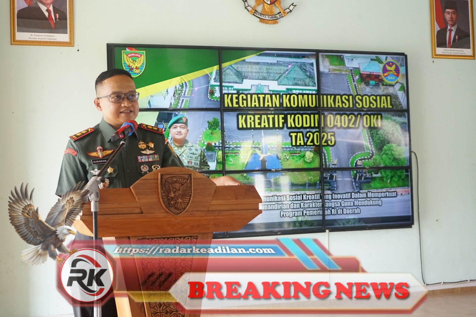 Komsos Kreatif 2025 berlangsung penuh pada hari Kamis, 11 Desember 2025, bertempat di Aula Darmawangsa Makodim 0402/OKI-OI, Kabupaten Ogan Komering Ilir.