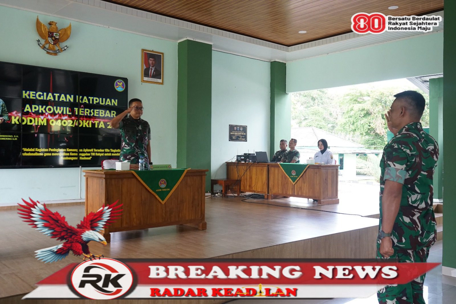 Ogan Komering Ilir, Radar Keadilan Guna memperkuat peran aparat komando kewilayahan (Apkowil) sebagai garda terdepan TNI AD, Komandan Kodim 0402/OKI Letkol Inf Gunawan Wibisono, S.H., secara resmi membuka kegiatan Peningkatan Kemampuan Apkowil Tersebar TA. 2025.
