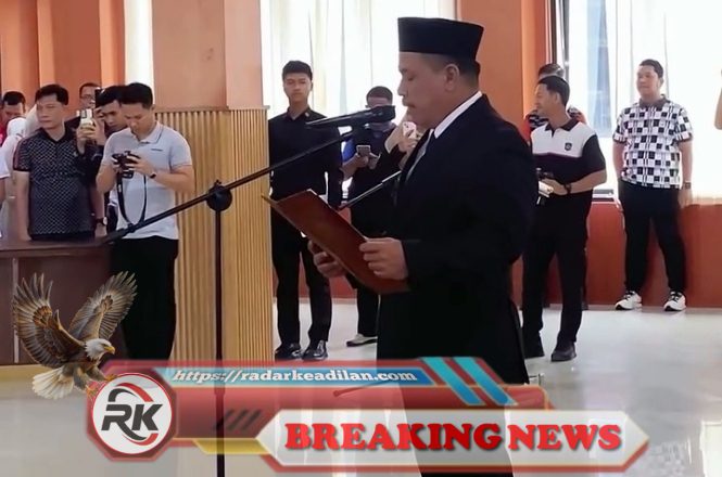 Wakil Bupati OKI, Supriyanto, SH, saat memimpin prosesi pelantikan enam Pejabat Pimpinan Tinggi Pratama (JPTP) di Kantor Bupati OKI, Jumat (28/11/2025)./radarkeadilan.com