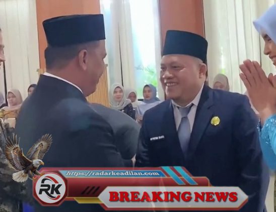 Wakil Bupati OKI, Supriyanto, SH, memberikan ucapan selamat kepada salah satu Pejabat Pimpinan Tinggi Pratama (JPTP) yang dilantik di Kantor Bupati OKI, Jum’at (28/11/2025)./radarkeadilan.com