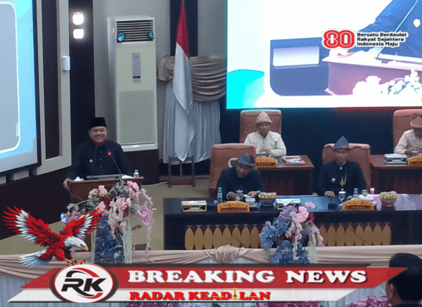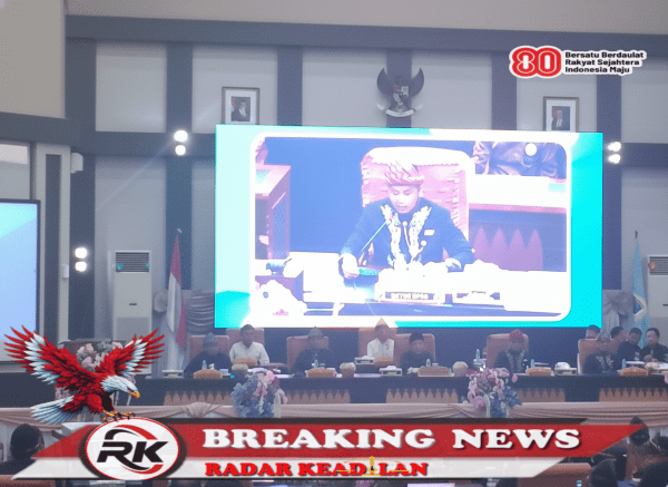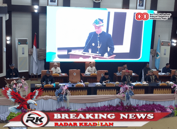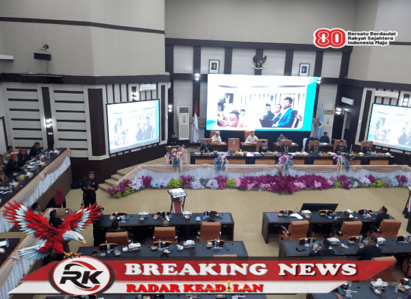 Rapat Paripurna DPRD OKI berlangsung khidmat dalam rangka memperingati HUT ke-80 Kabupaten Ogan Komering Ilir, Sabtu (11/10/2025), dengan tema “OKI Gas, Sinergi Kuat, Melaju Hebat”./radarkeadilan.com