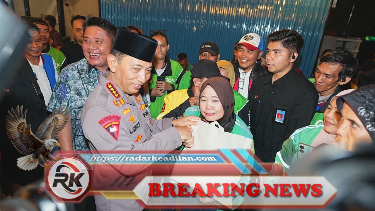 Kapolri Jenderal Polisi Listyo Sigit Prabowo secara langsung menyerahkan bantuan kepada salah satu perwakilan pengemudi ojek online perempuan di Palembang, dengan suasana penuh kehangatan yang mencerminkan perhatian Polri terhadap kesejahteraan seluruh elemen masyarakat.| Andrian, radarkeadilan.com