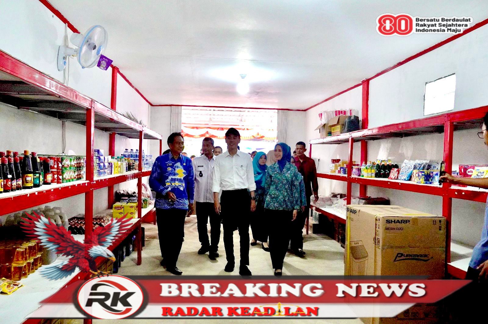 Bupati OKI, H. Muchendi Mahzareki, SE., M.Si, didampingi Ketua TP PKK Kabupaten OKI, Ny. Hj. Ike Meilina Muchendi, SE., M.Si, dan Ketua GOW OKI, Ny. Diyem Wahyuni Supriyanto, meninjau stok barang di Koperasi Desa Merah Putih (KDMP) Mulya Jaya, Kecamatan Mesuji Raya, Ogan Komering Ilir, usai peresmian pada Kamis (30/10/2025). KDMP ini diharapkan dapat memenuhi kebutuhan pokok warga dengan harga terjangkau./radarkeadilan.com