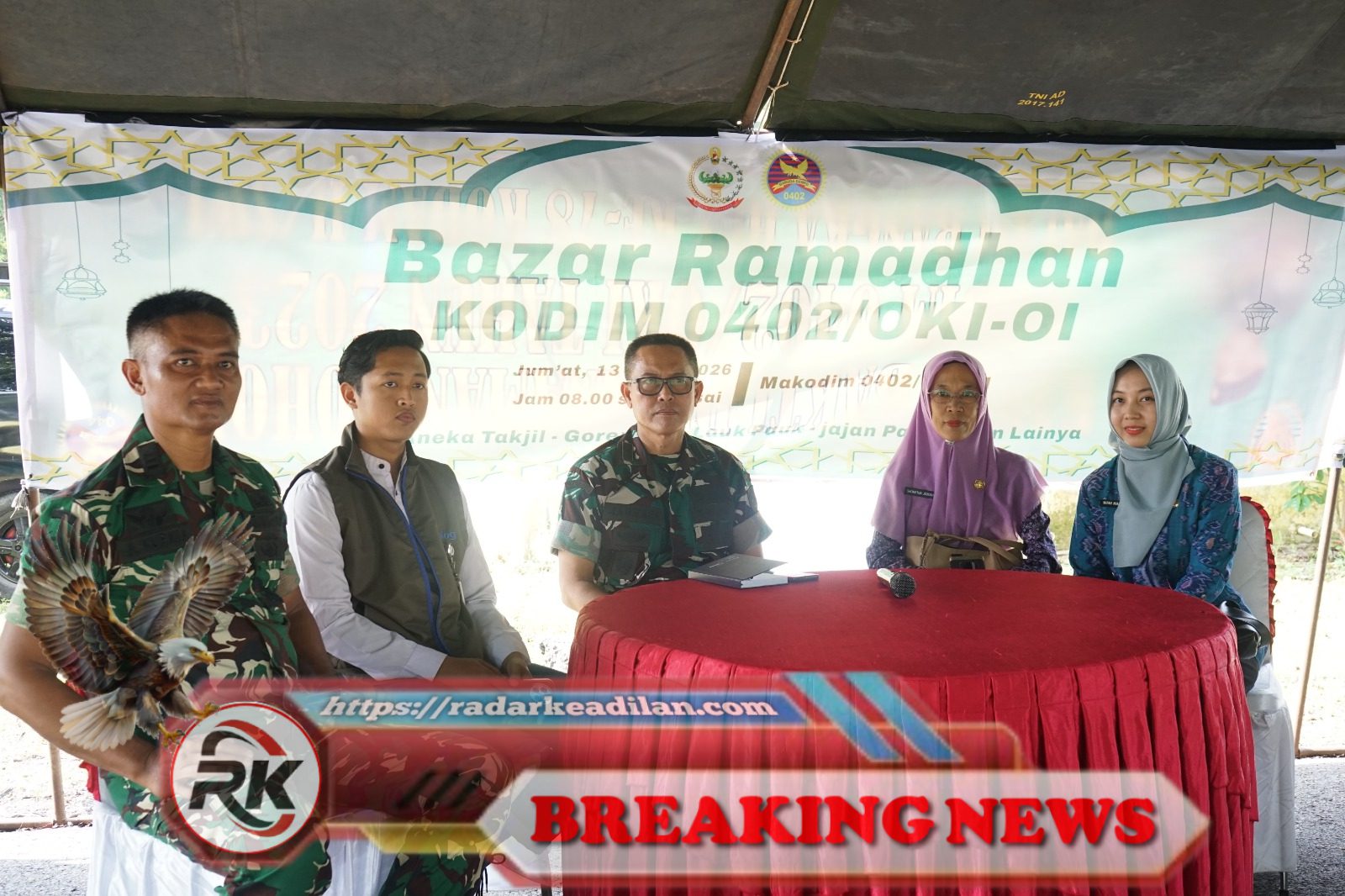 Ogan Komering Ilir, Radar Keadilan Bulan suci Ramadhan diperingati dengan kegiatan nyata bagi masyarakat, melalui Bazar Ramadhan yang diselenggarakan Kodim 0402/OKI di Makodim 0402/OKI pada Jumat (13/2/2026).