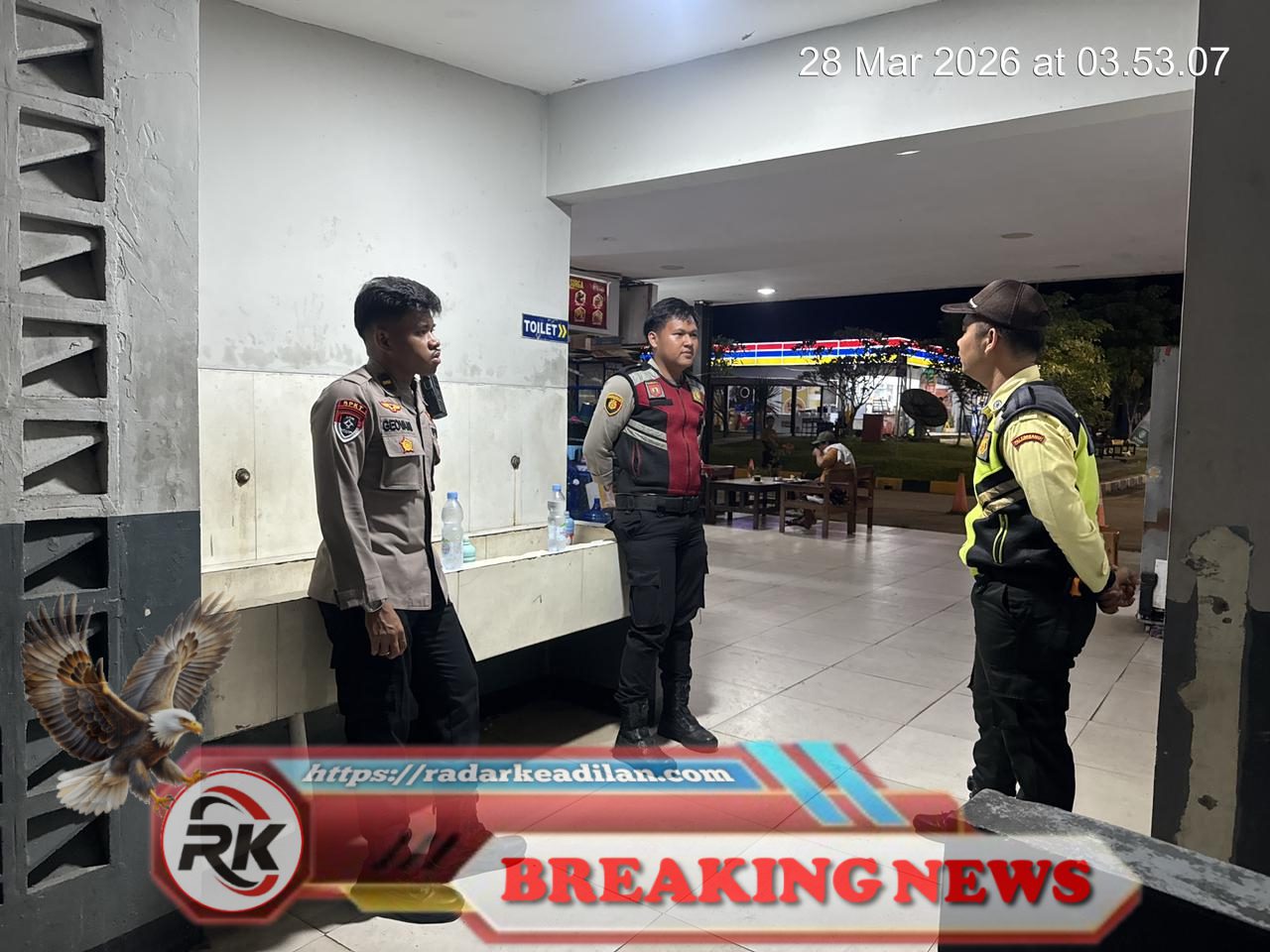 Pada 28 Maret 2026 sekitar pukul 03.53 WIB, petugas Polres OKI bekerja sama dengan petugas terkait melakukan koordinasi di lokasi rest area, dalam rangka menangani kasus anak pemudik yang tertinggal dan memastikan keselamatan mereka.| HS, radarkeadilan.com