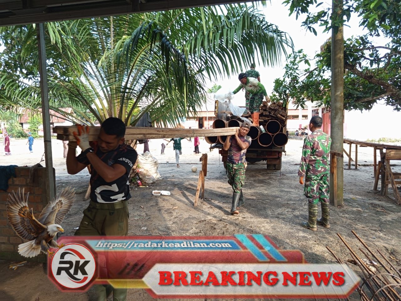 Personel Kodim 0402/OKI-OI bekerja sama dengan unsur terkait menjalankan tugas secara maksimal di lapangan, dengan target menyelesaikan pembangunan sesuai jadwal yang telah ditetapkan.