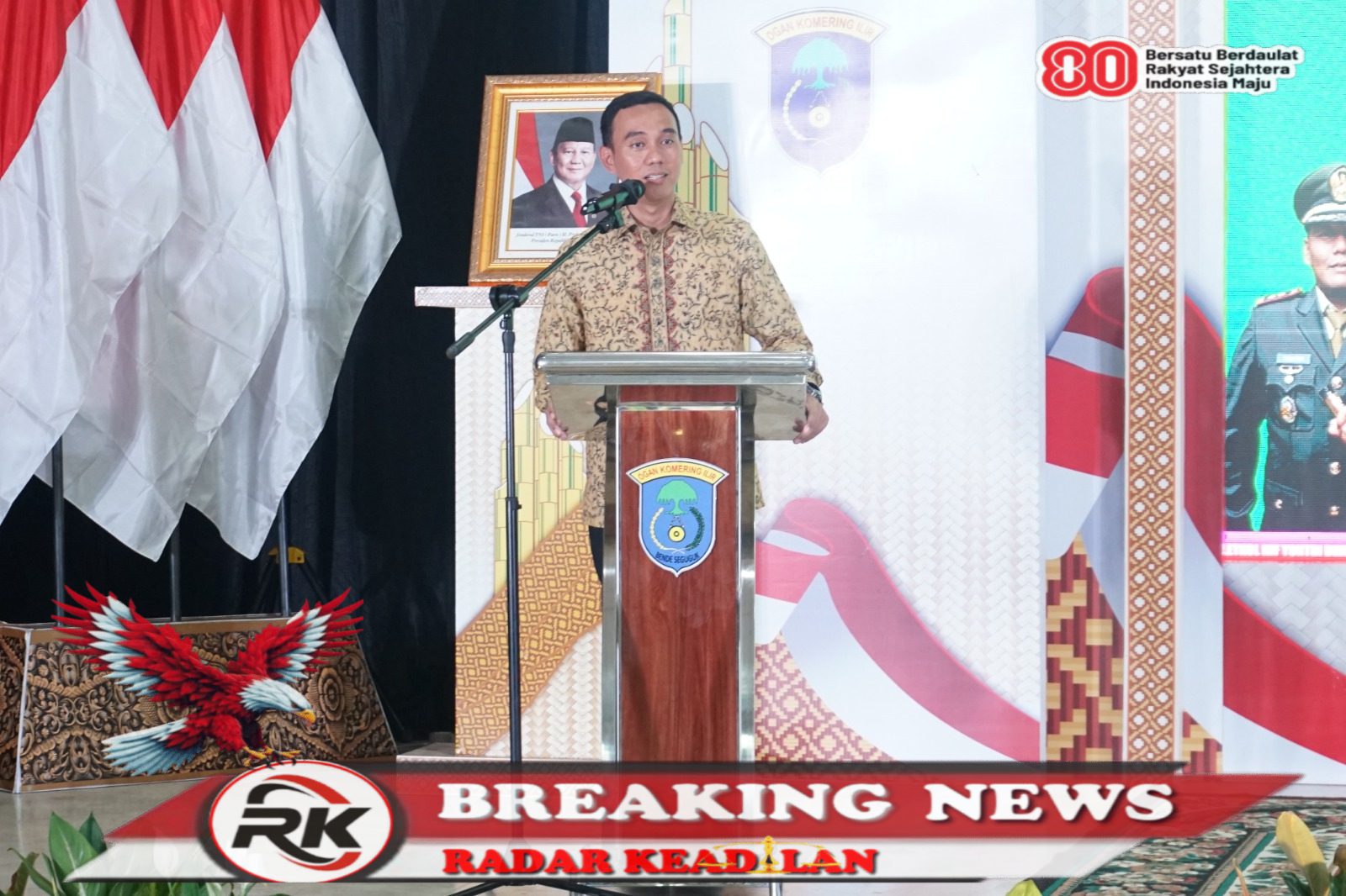 Bupati OKI, H. Muchendi Mahzareki, menyampaikan apresiasi atas dedikasi Letkol Inf Yontri dalam acara pisah sambut Dandim 0402/OKI-OI di Pendopo Kabupaten OKI, Rabu (8/10/2025), serta harapan peningkatan sinergi antara Pemkab OKI dan TNI./radarkeadilan.com