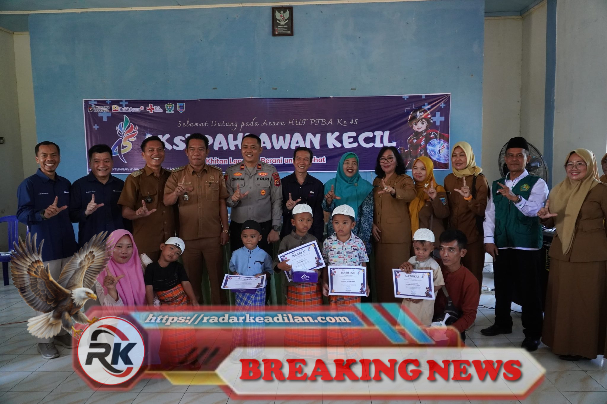 Kegiatan tahap pertama telah dilaksanakan pada Selasa, 7 April 2026, di Balai Kantor Kecamatan Merapi Timur, Kabupaten Lahat, dan diikuti oleh 100 anak.