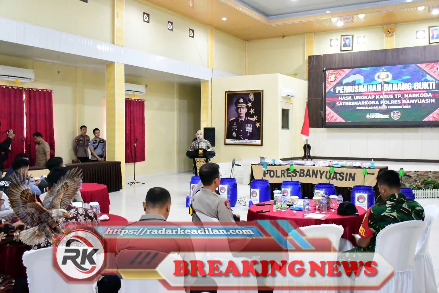 Pangkalan Balai, Radar Keadilan Komitmen penegakan hukum dalam memberantas peredaran gelap narkotika di wilayah Banyuasin mendapatkan bukti nyata dengan pelaksanaan pemusnahan barang bukti narkotika jenis sabu dalam skala besar.