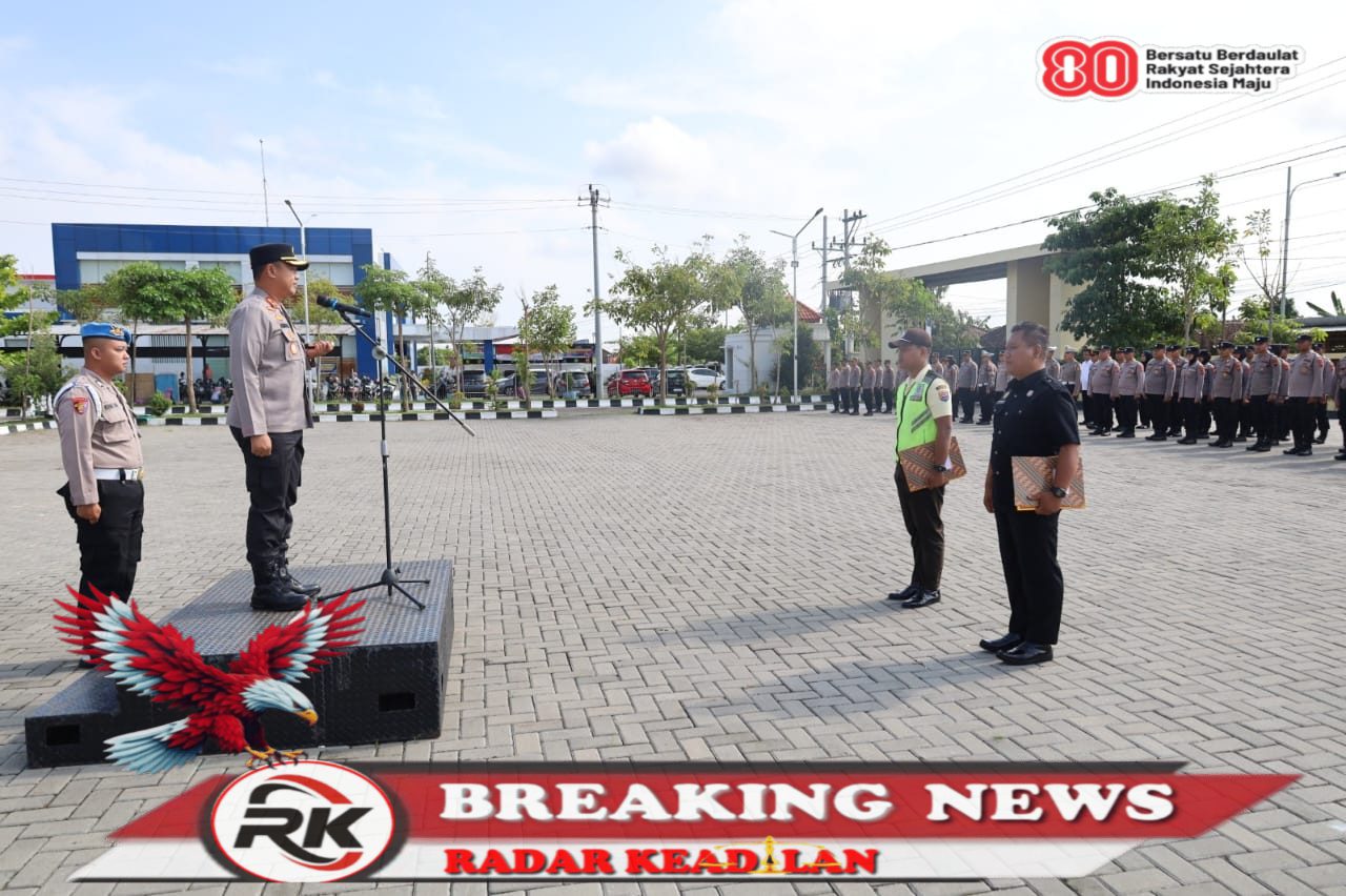 Apel Commander Wish: Kapolres Sukoharjo, AKBP Anggaito Hadi Prabowo, S.H., S.I.K., memimpin apel pagi di Lapangan Presisi Polres Sukoharjo, Senin (27/10/2025), sebagai wujud apresiasi kepada pihak-pihak yang berkontribusi dalam menjaga keamanan wilayah./Gunadi Pramono, radarkeadilan.com