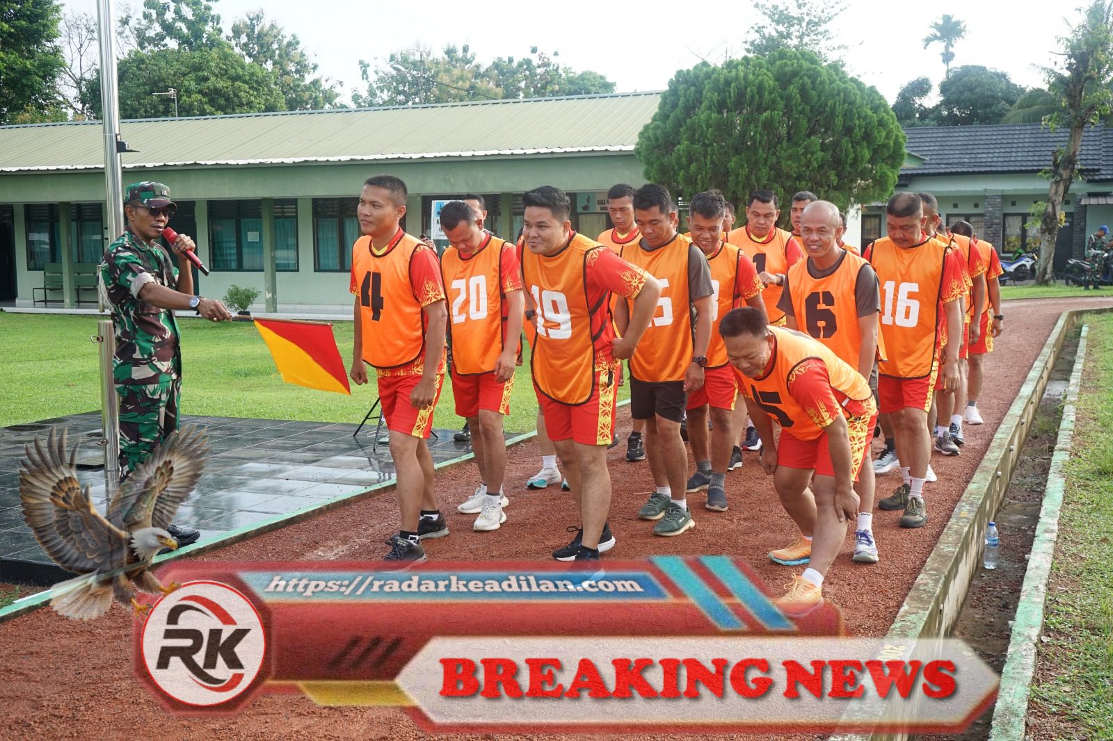 Prajurit Kodim 0402/OKI-OI bersemangat mengikuti Kesegaran Jasmani (Garjas) Periodik Semester II Tahun 2025 di Lapangan Makodim 0402/OKI-OI, Jumat (14/11/2025)./radarkeadilan.com