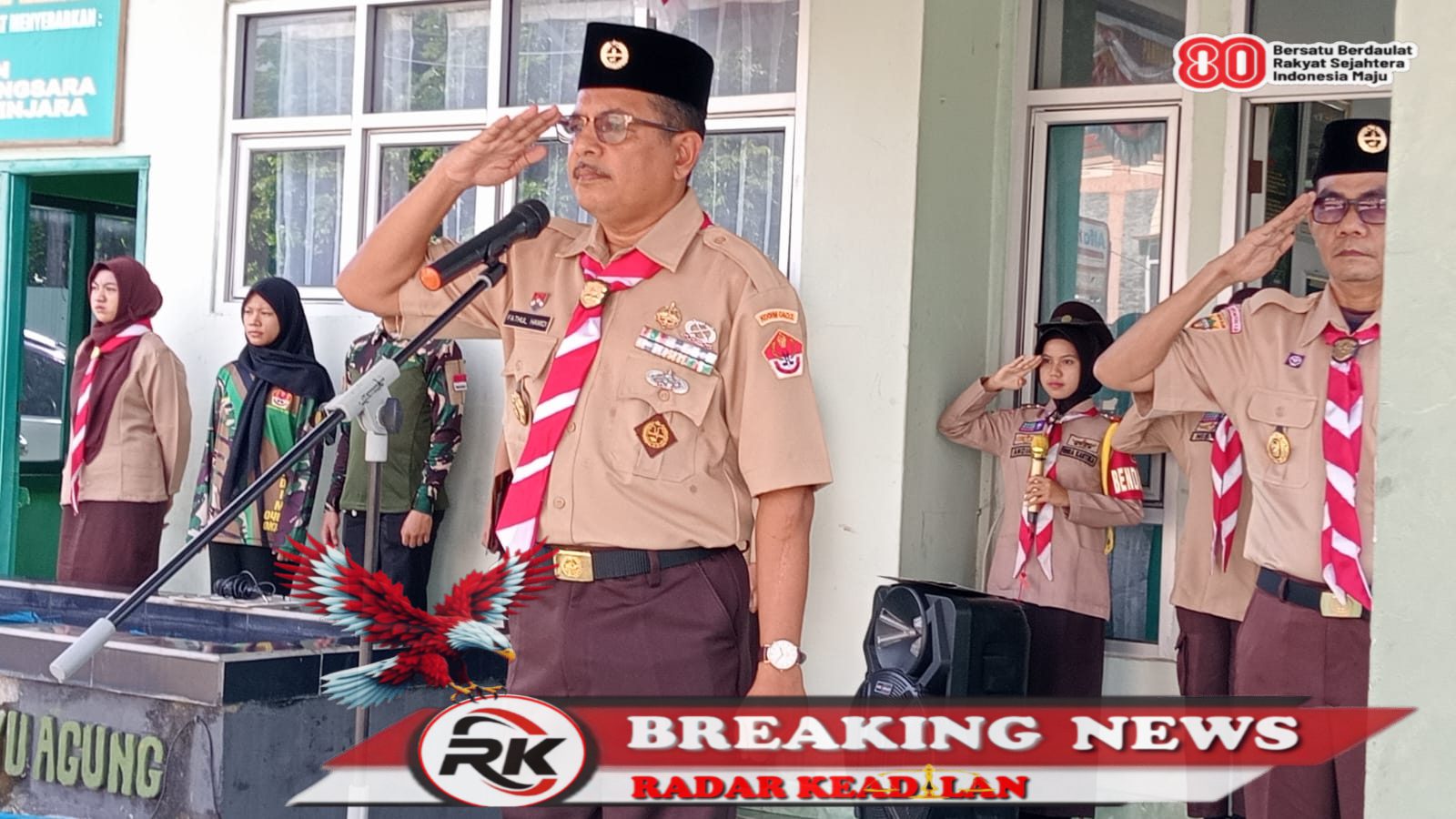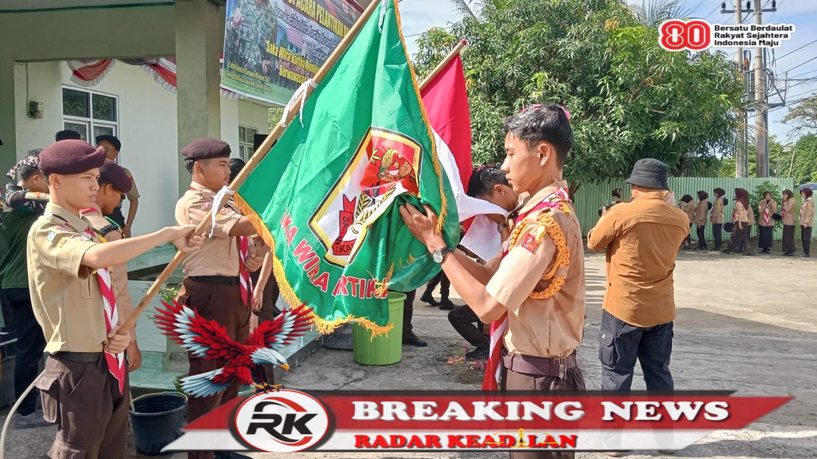 Semangat berkibar dalam upacara pelantikan 59 anggota baru Pramuka Saka Wira Kartika Koramil 402-10/Kayuagung, simbol komitmen untuk terus menjunjung tinggi nilai-nilai kebangsaan dan cinta tanah air, Sabtu (25/10/2025)./radarkeadilan.com