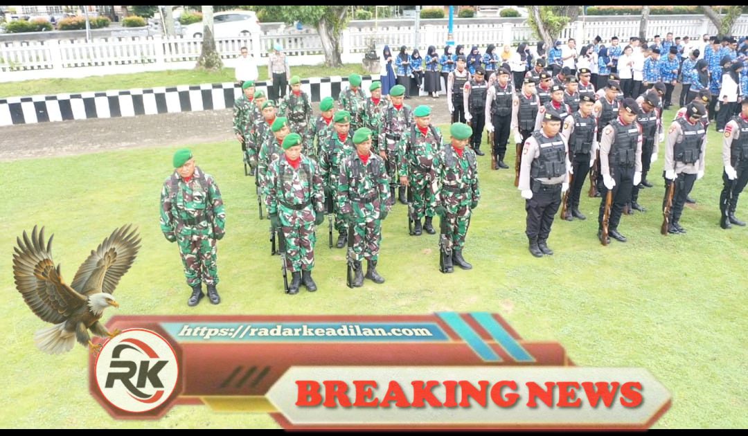 Bersatu dalam Semangat Pahlawan: Personel TNI-Polri mengikuti upacara peringatan Hari Pahlawan ke-80 di halaman Kantor Pemkab OKI, Senin (10/11/2025)./radarkeadilan.com