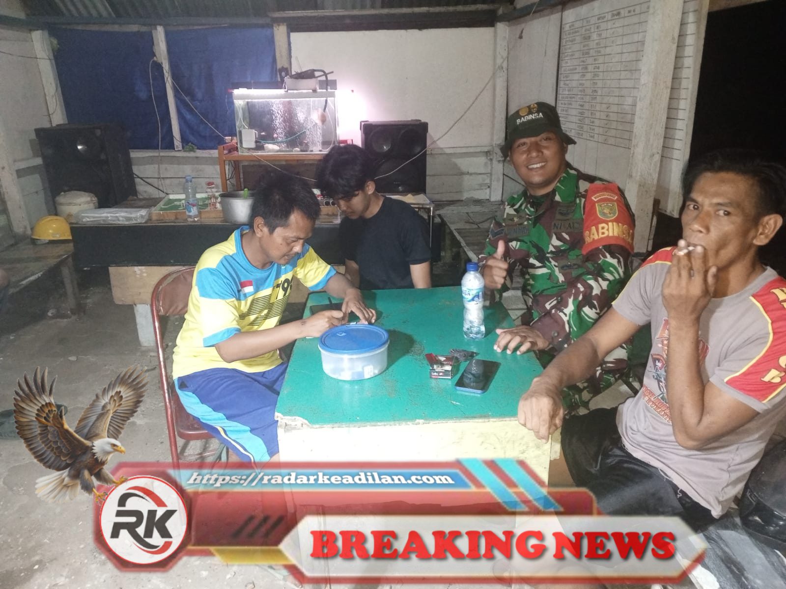 Sertu Babinsa Koramil 402-11/Tulung Selapan aktif berkoordinasi dengan warga dalam kegiatan Siskamling, demi mewujudkan keamanan dan ketertiban di wilayah Ogan Komering Ilir./radarkeadilan.com