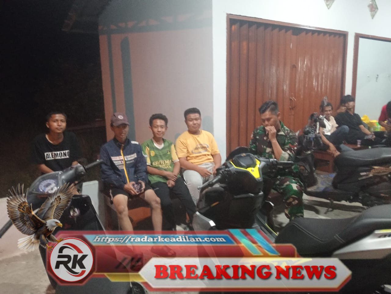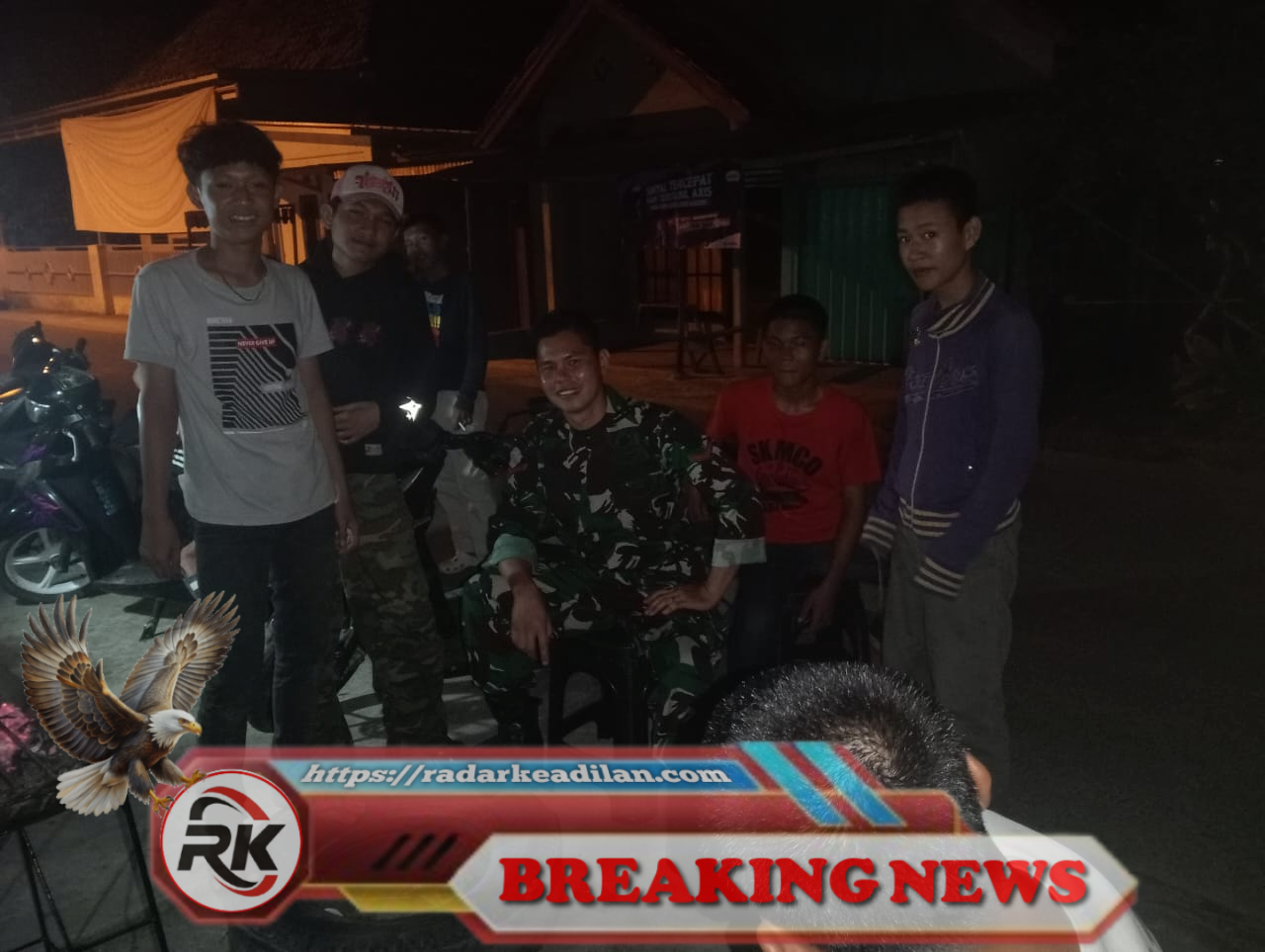 Patroli siskamling ini melibatkan anggota Babinsa dan pemuda Karang Taruna yang secara bersama-sama berkeliling desa.