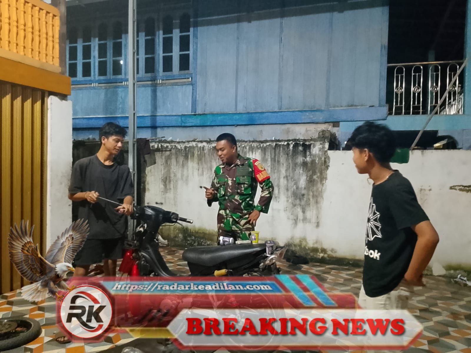 Babinsa Sertu Rio Kurniawan bersama warga dan tokoh masyarakat Pedamaran IV aktif melakukan patroli Siskamling, memperkuat sinergi menjaga keamanan dan kondusivitas desa di malam hari./radarkeadilan.com