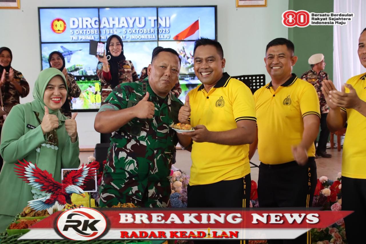 Tepuk tangan meriah warnai syukuran HUT ke-80 TNI di Makodim 0402 OKI, Minggu (5/10/2025), simbol apresiasi dan soliditas TNI-Polri yang terus terjaga./radarkeadilan.com