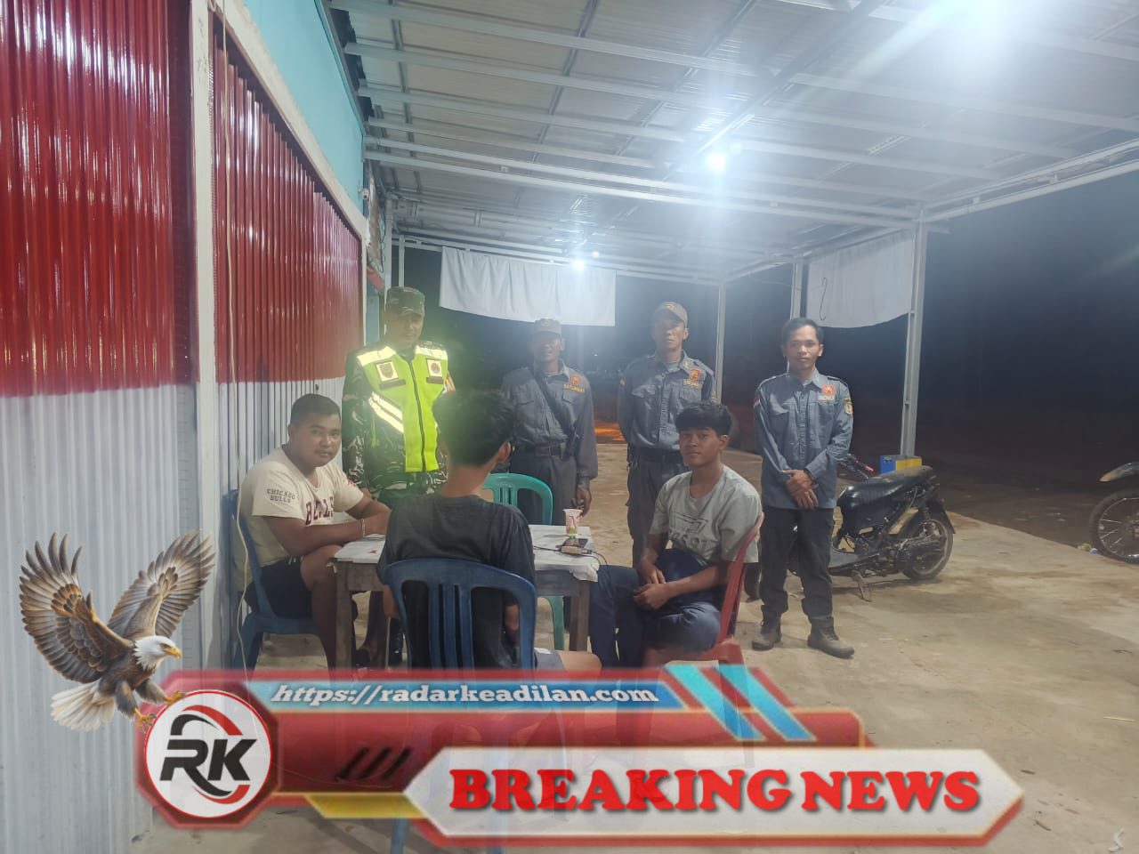 Pada pelaksanaan Siskamling di Desa Talang Jaya, Kecamatan Sungai Menang, Babinsa Sertu Suryanto bersama tiga anggota Satlinmas (Satuan Perlindungan Masyarakat) dan sejumlah warga bahu-membahu melakukan patroli di lingkungan desa.