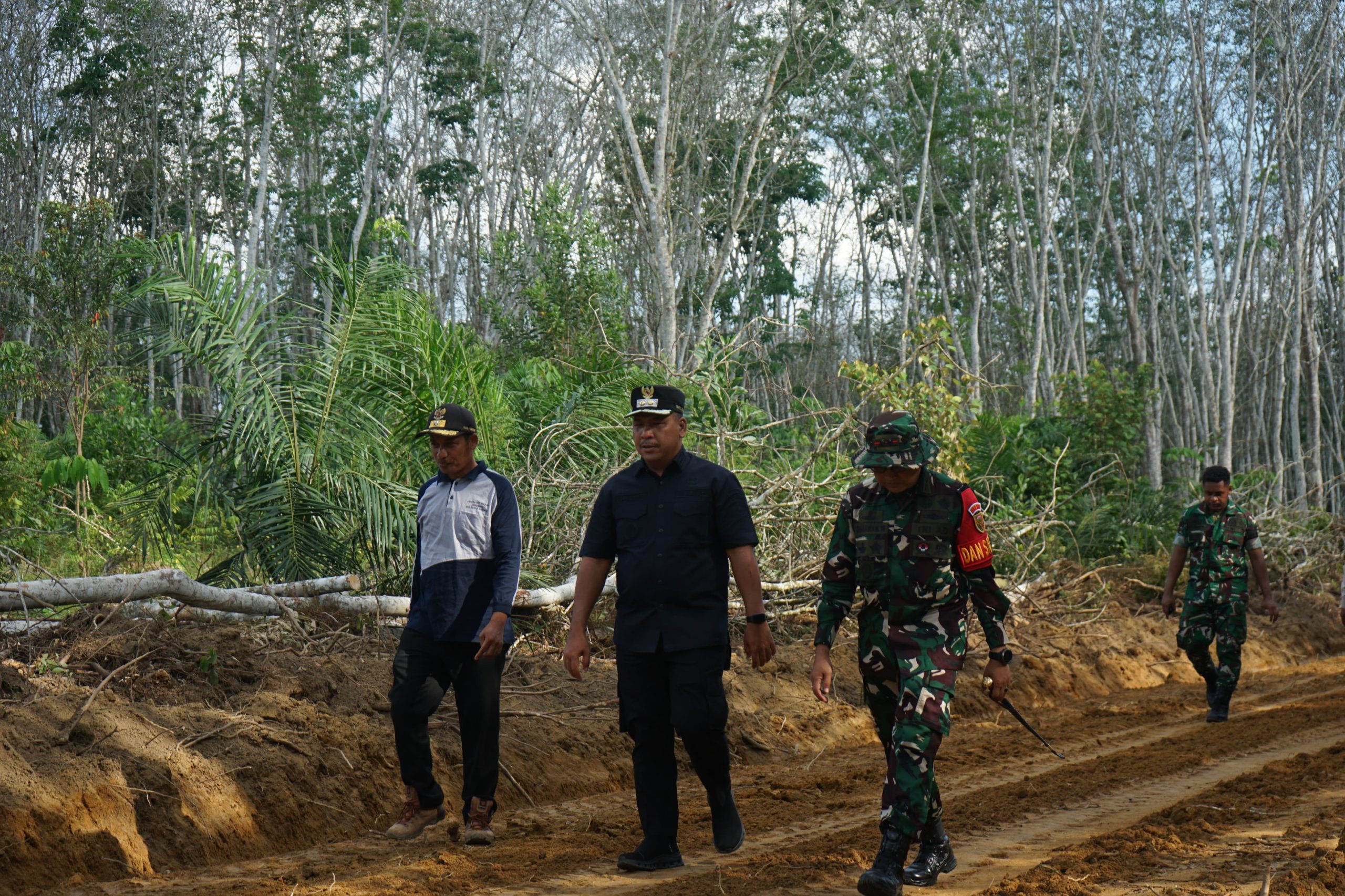 Kedua tokoh tersebut meninjau secara detail kondisi medan serta perkembangan fisik pembukaan jalan yang menjadi akses vital bagi konektivitas wilayah setempat.
